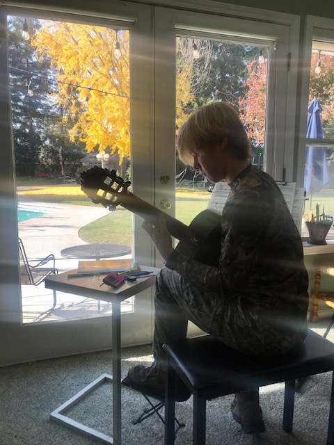 Now about those boys. Titus (just turned 18!) graduated from high-school a year early and is now entering into a classical guitar program at Fresno State which is a short walk from our house across their agricultural fields and orchards. (You can check out his playing on his Youtube channel by clicking here). Joel (16 1/2) is living his dream working for a crazy Hollywood stuntman who invented a machine to eradicate ground squirrels from farm land. He’s literally getting paid to do what he was doing for fun all day in the mountains. He also dabbles in school work on the side in a sad attempt to finish a year early as well. He and Ty are both in the market for a used truck if any of you have any leads. There’s some urgency in this not just for work but they also now have to commute to all their favorite hunting/fishing spots. Also, Joel’s adorable black lab keeps puking in our car and we’ve had enough of that. They’ve amassed quite a following on their other Youtube channel called 4600 Outdoors which chronicles their mad skills of hunting down critters, killing them, and making them taste good. Nate (14 1/2) lives part time at the climbing gym and part time in his own head dreaming about climbing (if any of you knew his Grandpa Jim, you’ll know where that came from). He comes down out of the heights periodically to get his own school work done and to build stuff and is proving to be quite the master craftsman. Sam (12 1/2) is our cowboy without a cow or a horse so has had to settle on herding chickens in our backyard instead. He rides other people’s horses every chance he can get and won his first real silver buckle for first place at the Backcountry Horseman competition by box-hitching a mule in under 2 minutes. He’d learned how the day before. He has a keen business sense and quite an odd-job operation going in the neighborhood. The oddest of which being how he managed to buy all the chickens from his brothers that I had bought for them with the hopes of saving money since they’d each be collecting their own eggs to eat every morning. Now he has a monopoly on the chickens and is charging me for the eggs.  Gideon (8) just loves airplanes, helicopters and anything else that can fly including his two pet parakeets, a blue one named Friday which we purchased on a Saturday and a yellow/green one named Blue which we purchased on a Friday.
