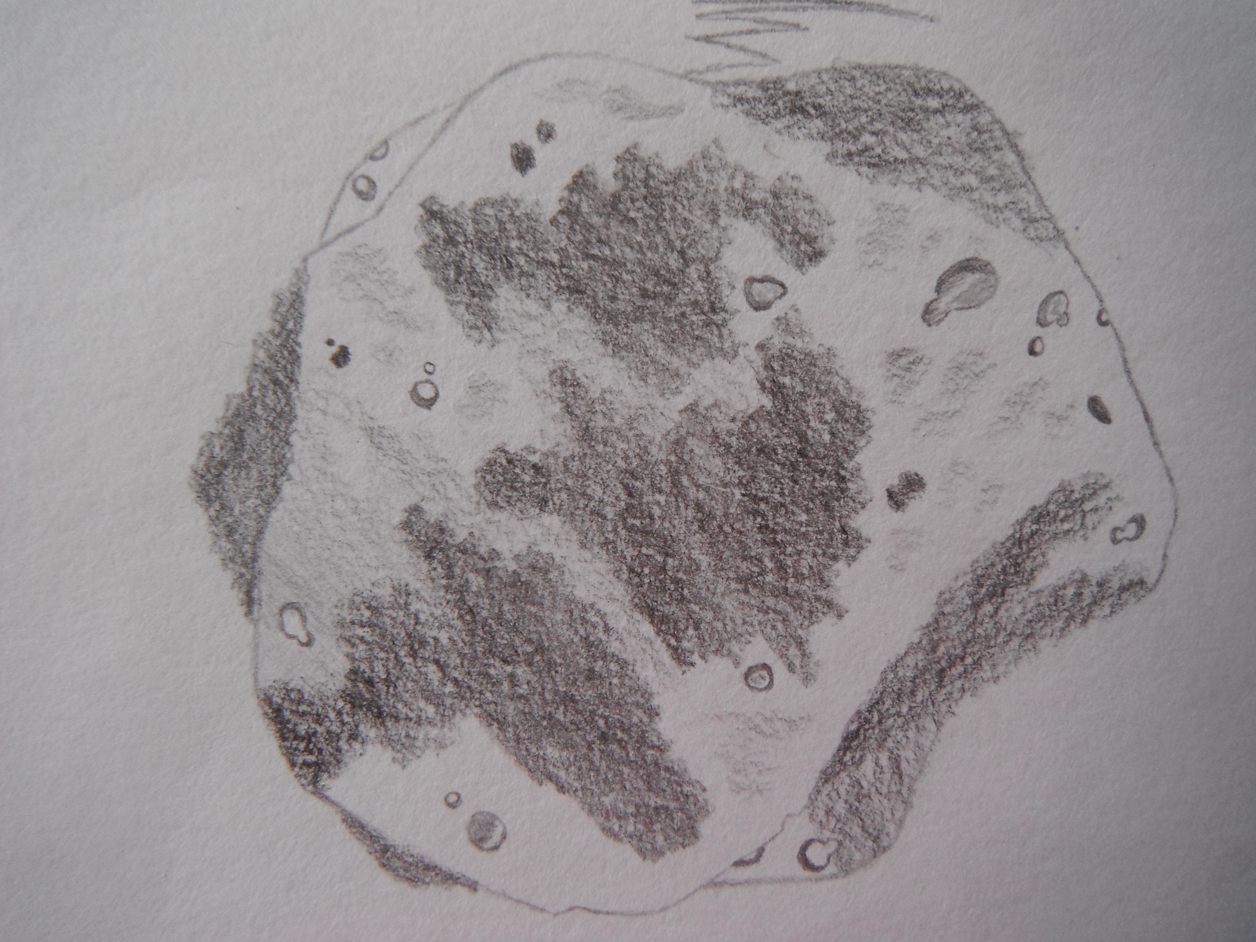 We are learning about space rocks. NASA had a contest to name a big asteroid that some people are afraid will hit the earth in a 170 years. Mom said they should name it Angst because it makes people scared but I thought they should name it Petros which means rock since that is all it is. Here is a picture of my asteroid (Titus, 9).