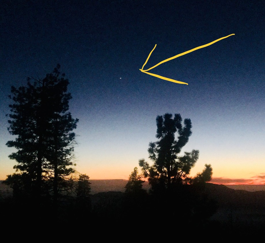 I have a lot of regrets as a parent. One thing I’ve never regretted though, is making the extra effort to experience things first hand rather than passively watching them on a screen as we are so trained to do today. They even want us to passively watch church on a screen! The advent of TV and internet has brought us a lot of things. But one thing it has taken away is real first-hand experience in God’s created world. Just like church on a screen is no substitute for the real thing, neither is observing the heavens that Psalm 19 describes as declaring the glory of God. Packing the kids up in the middle of the night to drive to the top of Hawaii’s highest mountain, Mauna Kea, just so we could see it cast it’s pyramid shaped shadow over the ocean as the sun rose over the Pacific– totally worth it. Driving out to the Kona airport to wait in line so the NASA folks could let us see the Venus transit of the sun through their fancy telescopes– totally worth it. Pulling everyone out of bed in the pre-dawn hours to wander sleepily out onto the golf course just to watch the ISS pass overhead– totally worth it. And yes, packing up our dinner and driving down the road to watch the last-seen-in-1226-conjunction-of-Jupiter-and-Saturn last night was also totally worth it.
